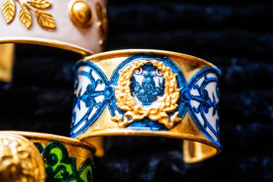Gold and Ceylon Blue Laurel Wreath Cuff Bracelet