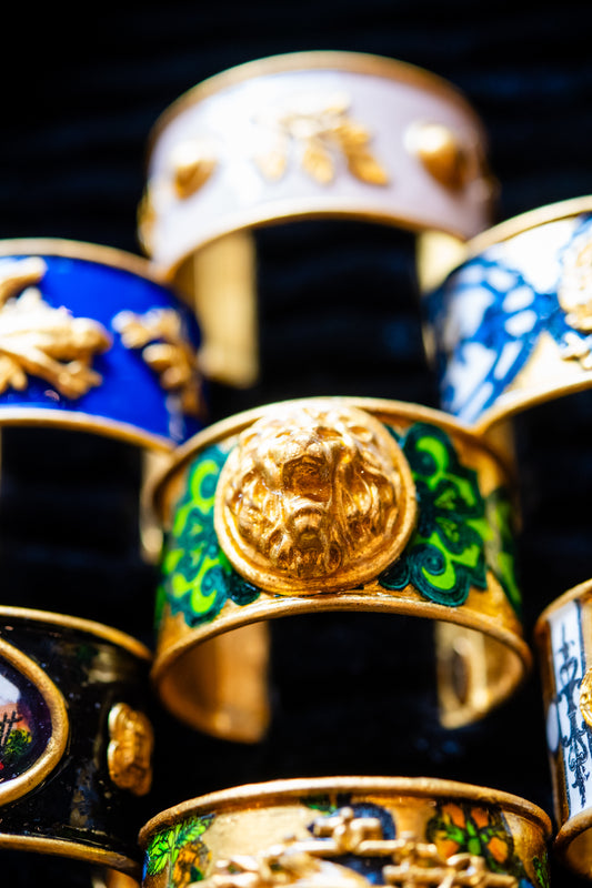 Gold and Emerald Green Lion's Head Cuff Bracelet