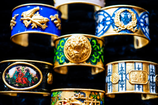Gold, Black, and White Striped Intaglio Cuff Bracelet