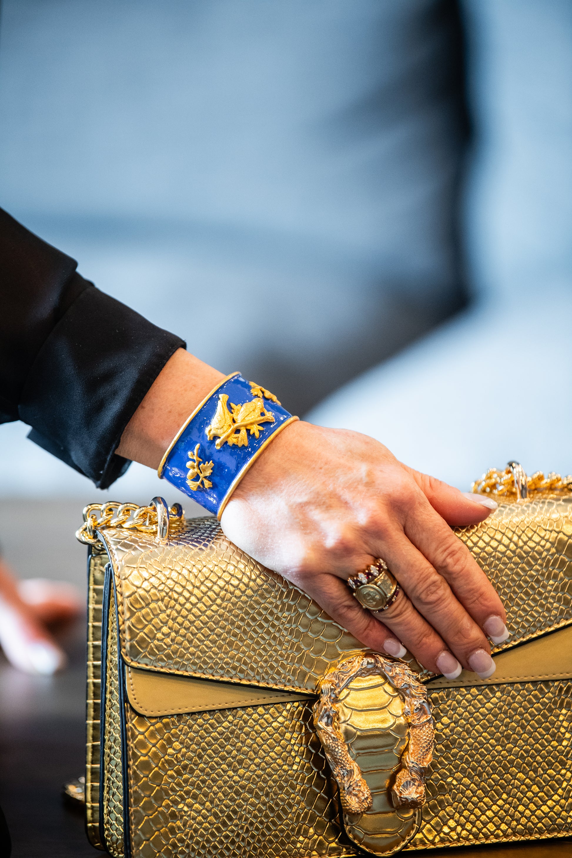 Striking cobalt blue and gold bird design is gorgeous and eye-catching! Inspired by the gift of and our connection to nature. Feel amazing and bold with this dramatic statement jewel!